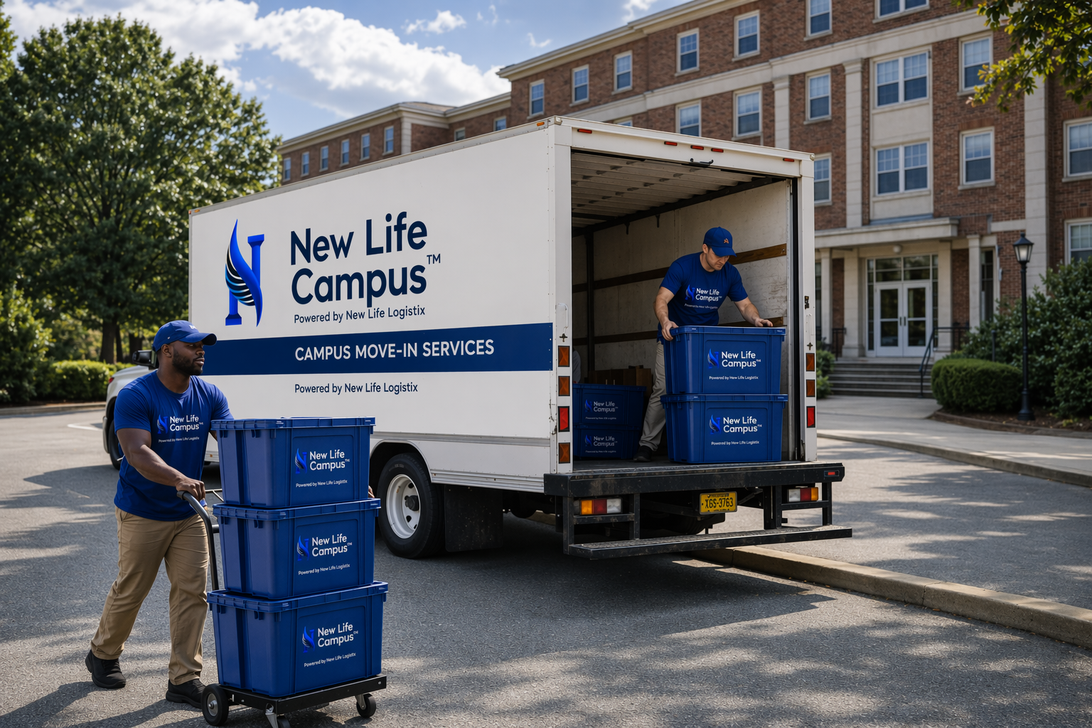 New Life Campus handles the entire process from start to finish. We pick up belongings, deliver them directly to dorm rooms or apartments before arrival, store them between semesters, and return everything when students come back.